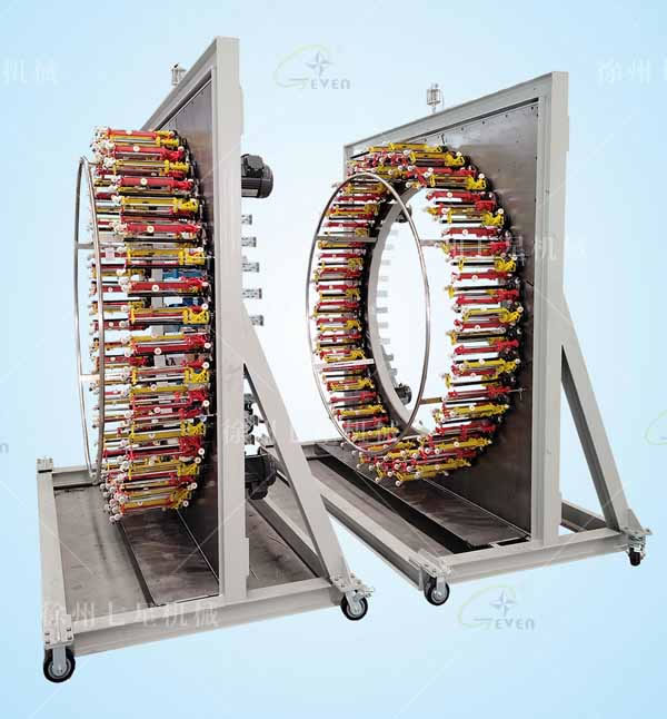 該系列編織機主要用于各種較大規格繩帶(工具繩、游艇用繩、索具繩等)、電線電纜屏蔽層、高壓膠管、大規格玻纖管等的編織。